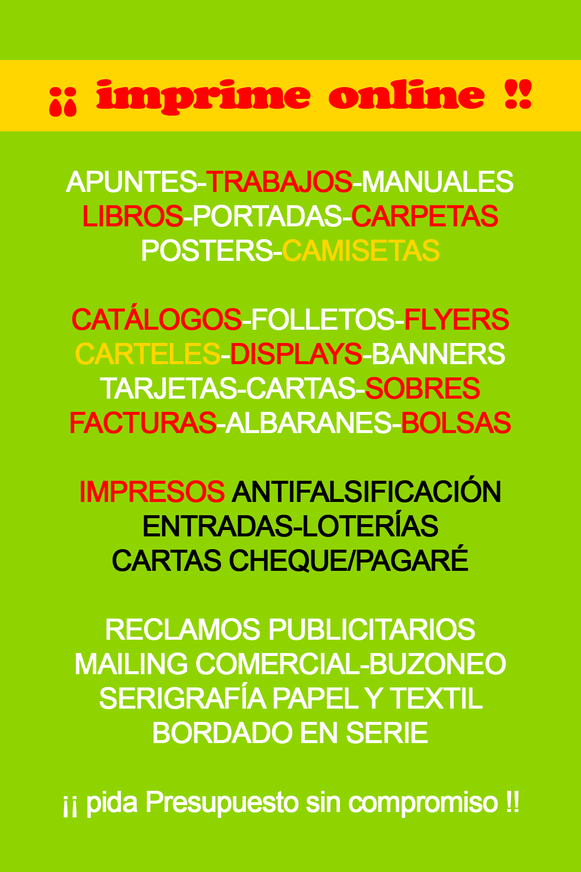 En XD-online queremos ser su imprenta en internet ofreciendo en la actualidad servicio de impresión de archivos subidos por el cliente, los cuales, una vez impresos podrá recoger en tienda, a la salida de su oficina, despacho, etc...